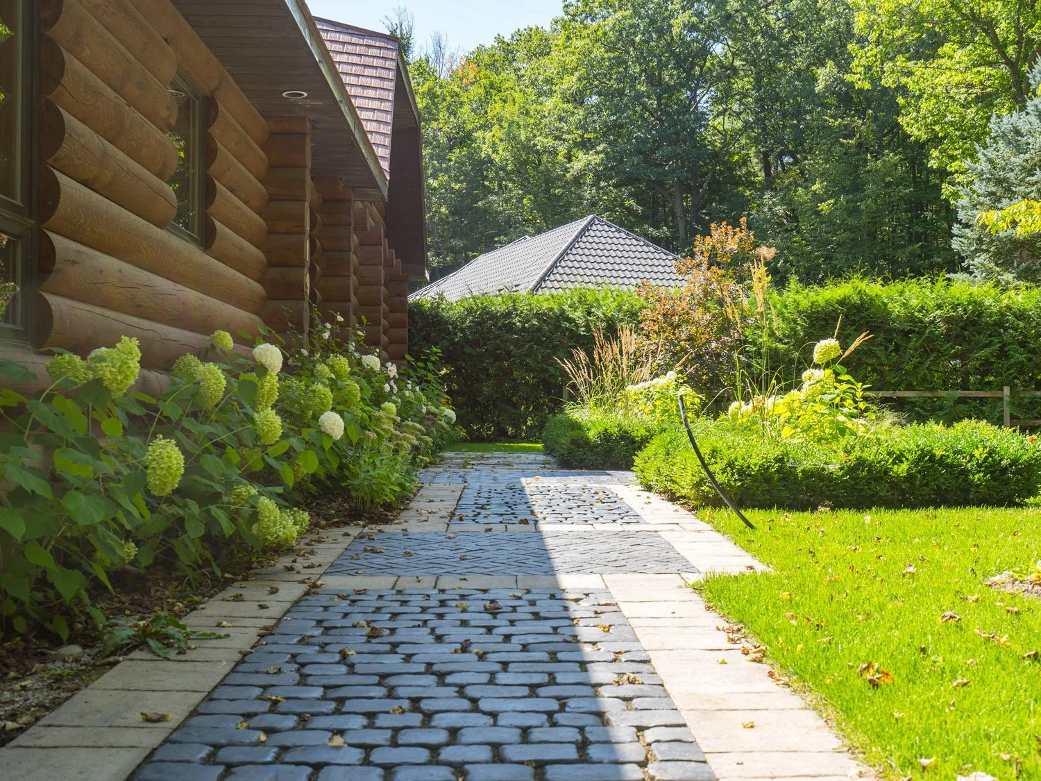 From the beginning stages, designing renderings of landscaping plans to the final product, this custom log home in the Georgian Bay area underwent a significant transformation making each space beautiful and functional. We installed a retaining wall in the backyard to maximmize the usable space, and installed a new composite deck to withstand the elements. We completed all new interlocking in the front and one the lower level in the backyard which overlooks the Nottawasaga river, with natural stone stairways leading you around the property, low-maintenace garden beds and a built-in stone fire pit. This is the ultimate cottage getaway.